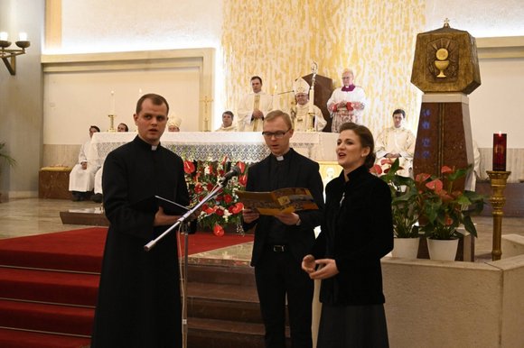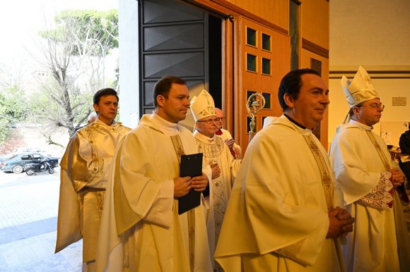 Kardinolo vadovaujamose Mišiose koncelebravo vyskupas A. Jurevičius, mons. Rolandas Makrickas, mons. Vytautas Grigaravičius ir keliasdešimt lietuvių bei svečių kunigų. Piligrimai iš Lietuvos bei Romos lietuvių bendruomenė pasirūpino, kad bažnyčioje plazdėtų didesnės ir mažesnės lietuviškos trispalvės.