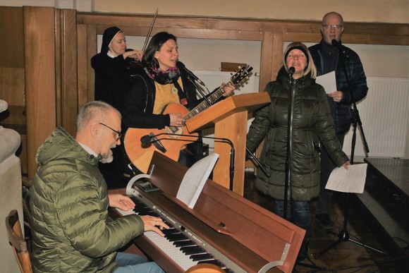 Giliau panirti į maldą už taiką, Kauno miestą ir Lietuvą vakaro dalyviams giesmėmis ir skaitomais psalmių tekstais padėjo „Gyvųjų akmenų“ bendruomenės šlovintojai. Vyko Švenčiausiojo Sakramento adoracija.