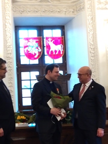 3-iojo laipsnio Santakos garbės ženklu už ypatingus nuopelnus Lietuvai ir Kauno vardo garsinimą apdovanotas Kauno kunigų seminarijos rektorius kunigas Ramūnas Norkus.