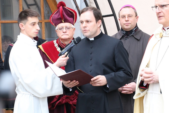 Rektoriaus sveikinime vyskupams, kunigams, Lietuvos seminarijų bendruomenėms, seserims ir broliams vienuoliams, miesto savivaldos, VDU atstovams atsiskleidė, koks gyvas mūsų istorijoje yra Pijus XI, kuriam, kai tik jis buvo išrinktas popiežiumi, seminarijos rektorius Jonas Mačiulis-Maironis pakabino marmuro lentą, kurioje parašė, kad „iš šitos vietos kalbėjęs Šventasis Tėvas Pijus XI, tebebūdamas dar Apaštališkuoju Vizitatoriumi“.