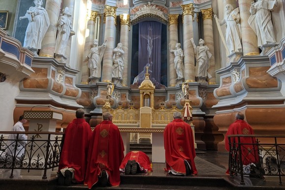 Ačiū Tau, Dieve, už kunigus ir už šią sukrečiančią galimybę pasitikrinti, ką mes tikime, kaip gyvename, kas esame, o ne tai, ką apie save kalbam, galvojam, kaip atrodom... Padėk išdrįsti mums šios ypatingos situacijos akivaizdoje pažvelgti į realybę, Kryžiaus akivaizdoje pamatyti save, savo artimą ir Tave, Dieve.