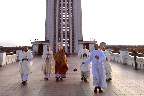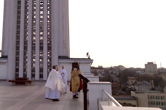 Šituo būdu džiaugsmingoji Kristaus Prisikėlimo naujiena miesto gyventojams buvo paskelbta beveik paraidžiui plg. Mt 10, 27 – „garsiai skelbkite nuo stogų“, nes terasa ir koplyčia, kur paskui vyko šv. Mišios, įrengtos ant šventovės stogo. Ištuštėjusiam miestui, kur šiandien taip trūksta žmonių, gyvybės ir džiaugsmo, tai buvo Velykų vilties žinia, kad Kristus yra ne mirties, bet gyvybės ir gyvenimo Viešpats!
