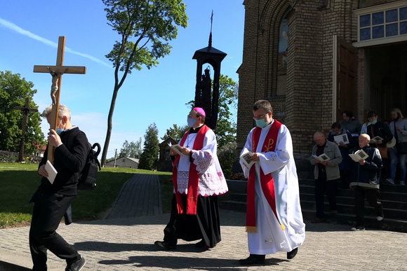 Pradžioje vyskupas paaiškino, jog Kalvarijų maldininkai turi savo intenciją, kurią nori nešti kartu su Kristumi Kryžiaus kelyje, tačiau šiemet visiems pirmoje vietoje tebūna pati svarbiausia intencija – kad Lietuvoje ir pasaulyje liautųsi pandemija.
