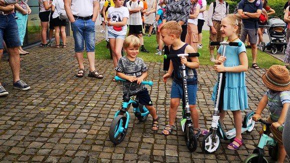 Po trumpos pietų pertraukėlės šeimos, apsiginklavusios vežimėliais, dviratukais ir paspirtukais, iškeliavo Šiluvos link. Nors saulė kaitino kaip dykumoje, visi dalyviai pasiekė finišą. Žygyje Rožinio malda visus suvienijo į bendrystę, kuri tęsėsi Švč. Mergelės Marijos Apsireiškimo koplyčioje klausant šeimos liudijimo ir švenčiant Eucharistiją Švč. Mergelės Marijos Gimimo bazilikoje. Vakarieniaujant išvargusius piligrimus pradžiugino Piligrimo pasai, kuriuos žygio dalyviams įteikė Piligrimų centro vadovas Mantas Kuraitis.