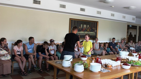 Uždegusios žvakutes Šviesos koplytėlėje, šeimos išvyko į Tytuvėnus, kur susipažino su Tytuvėnų bernardinų vienuolynu ir Švč. Mergelės Marijos Angelų Karalienės bažnyčia, stabtelėjo Kristaus laiptų koplyčioje, o vėliau klausėsi kunigo Rastislavo katechezės apie Emauso mokinių kelionę ir susitikimą su Jėzumi.