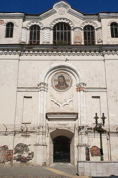 Taigi, toliau tęsiant tyrimo darbus, pietinio fasado centrinėje dalyje po storu tinko sluoksniu rastos XVII amžiaus trijų užmūrytų langų ir pagrindinio portalo angos. Vidiniuose durų angokraščiuose atsidengė išlikusios durų uždarymo sijos nišos ir kaltiniai buvusių dvivėrių durų vyriai. Virš durų išryškėjęs užrašas – Kath. Garnison-Kirche („Įgulos katalikų bažnyčia“) – atsirado apie 1915 m., kai cerkvė tapo Įgulos katalikų bažnyčia.