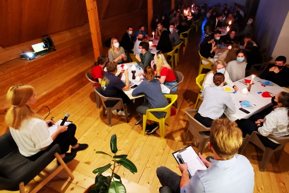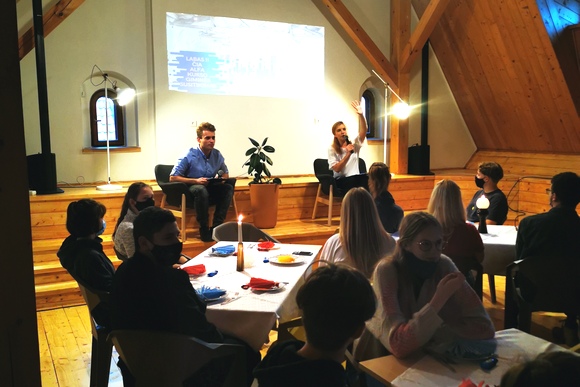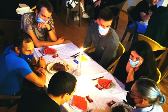 14 savanorių komanda pasipuošė baltutėliais marškiniais ir aplodismentais pasitiko 51 jauną žmogų, atvykusį į šventinį susitikimą. Dalyvių laukė staigmena – šventė žvakių šviesoje.