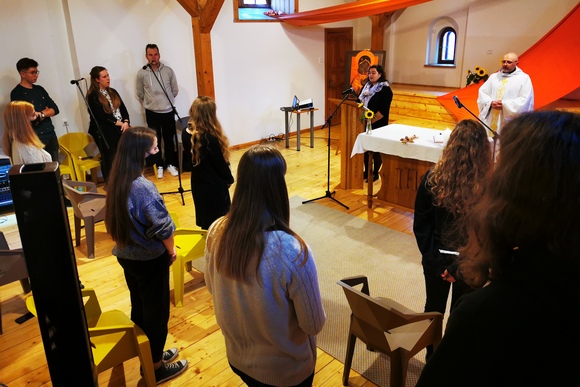 Jaunimo centro kapeliono kunigo Liutauro Vilėniškio vadovaujamas šv. Mišias šventė apie 30 jaunų žmonių. Giedojo Šv. Jono Pauliaus II parapijos kvartetas.