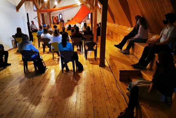 Pirmąjį mėnesio trečiadienį spalio 7-ąją į Kauno arkivyskupijos Jaunimo centrą užsukę moksleiviai, studentai, centro savanoriai susitiko prie Viešpaties altoriaus.