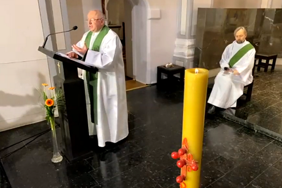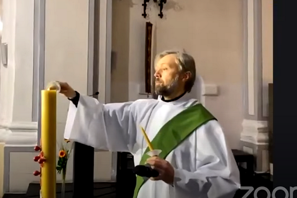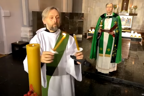 Šį kartą negalint atlikti įprasto ekumeninės maldos gesto – užsidegti žvakutes, jas nuo Velykinės žvakės uždegė liturgijoje patarnavęs diakonas Darius Chmieliauskas ir pakvietė tai padaryti savo maldos vietose.