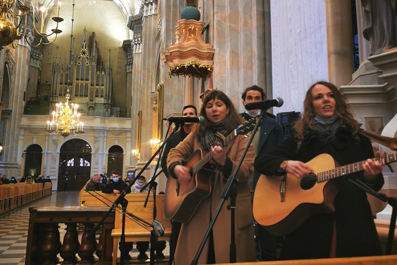 Kristaus Prisikėlimo džiaugsmas ir šviesa per arkivyskupo vadovaujamą maldą ir žodį, per jaunuosius Dievo žodžio skaitovus bei šlovintojus iš šio vakaro šventovėje tebesiliejo ir transliacijos dalyviams (šios trečiadienių pamaldos, negalint labai gausiai rinktis arkikatedroje, transliuojamos arkivyskupijos YouTube kanalu bei feisbuko paskyroje).