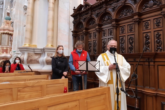 Bendruomeninėje maldoje buvo meldžiamasi Šventojo Tėvo intencija prašant pasaulį varginančios pandemijos pabaigos, taip pat už šią savaitę tragiškai iš gyvenimo pasitraukusią jauną gydytoją, prašant Viešpaties jautrinti gyvųjų sąžines ir troškimą kurti žmogiškesnius santykius.