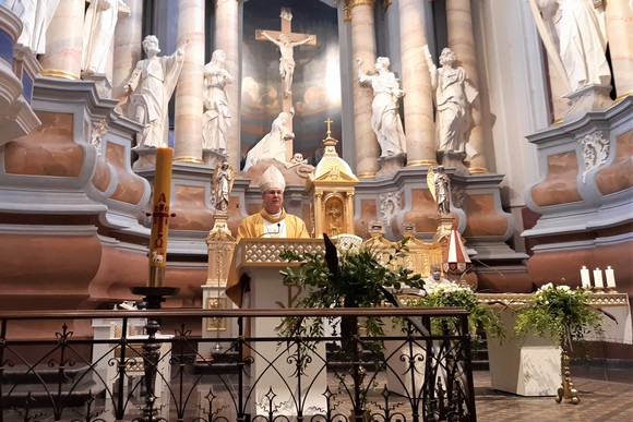 Šv. Mišiose per homiliją ganytojas, remdamasis skaitinyje skambėjusiu šv. Pauliaus kalbėjimu Atėnų gyventojams, pabrėžė, kad svarbu ne tik žinoti apie Dievą, bet ir pažinti Jį asmeniškai, kaip dėl mūsų kentėjusį, mirusį ir prisikėlusį Viešpatį.
