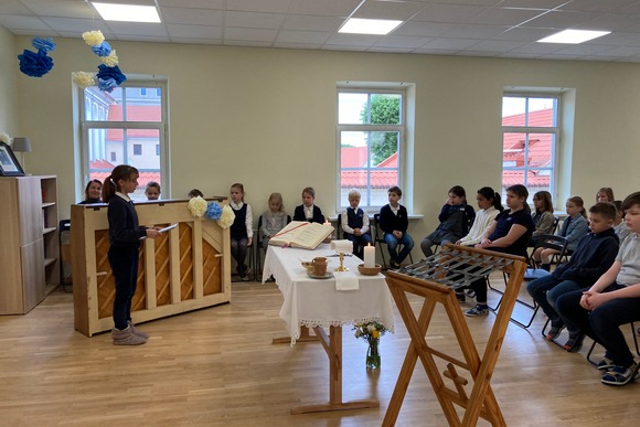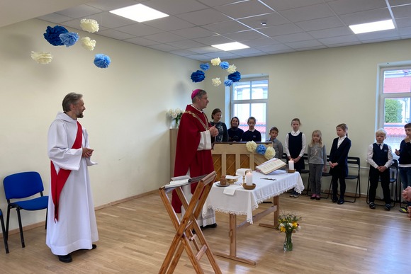 Homilijoje arkivyskupas Kęstutis vaikus įtraukė į išties draugišką pokalbį. Klausinėdamas vaikų, kam jiems reikalinga mokykla, ką jie čia veikia ir kam jiems šito reikės ateityje, sykiu ganytojas paaiškino ir tos dienos Šventojo Rašto skaitinius bei Evangeliją. Mat žinios, šio pasaulio pažinimas – yra nuostabūs, labai vertingi dalykai, auginantys mūsų supratimą ir protingumą, tačiau to nepakanka, jei protas netampa išmintimi. Tobitas Senajame Testamente, būdamas labai protingas vyras, vis dėlto negalėjo suprasti gan paprastų dalykų, kuriuos suprasti jam padėjo tik jo žmonos išmintis!