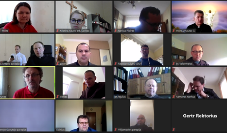Bendra malda nuotolinę konferenciją pradėjo Kauno I dekanato dekanas mons. teol. lic. Vytautas Grigaravičius.