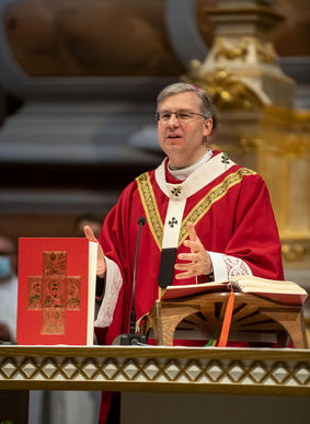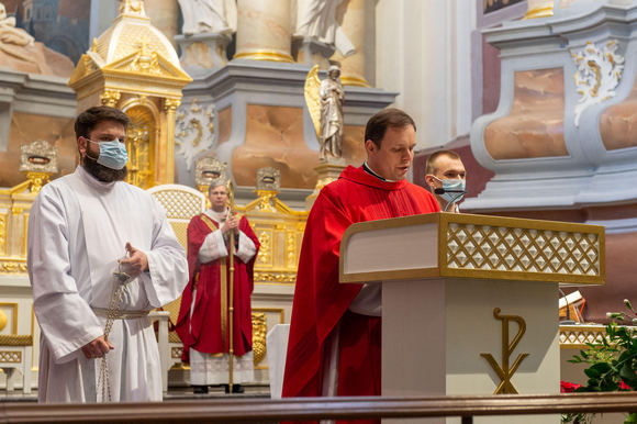 „Tai džiaugsmo diena, kurioje drauge išgyvename didžiulę Bažnyčios dovaną – Šventosios Dvasios išsiliejimą širdyse, kurios ilgisi Dievo, kurios be Jo kenčia. Jeigu žmogus atsiveria Dievo malonei, jo gyvenime prasideda nauja istorija. Šventasis Raštas tai vadina atgimimu iš aukštybių“, – sakė arkivyskupas Kęstutis šv. Mišių homilijoje.