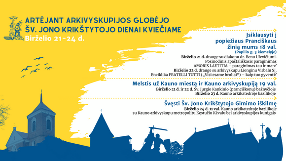 O birželio 24-ąją 11 valandą arkikatedroje bazilikoje džiaugsmingai švęsime arkivyskupijos globėjo Šv. Jono Krikštytojo Gimimą su arkivyskupu metropolitu Kęstučiu Kėvalu, lygiai prieš metus sutiktu toje pat šventovėje – vyskupo katedroje, bei visais arkivyskupijos kunigais.