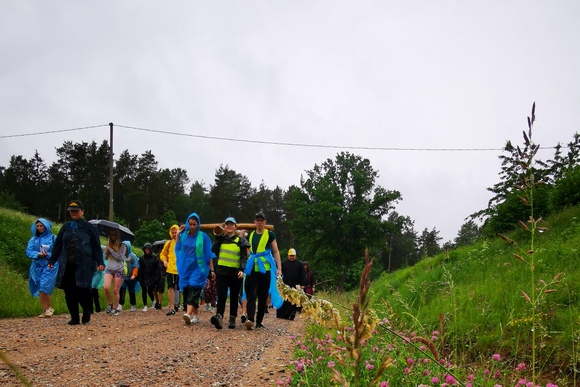 Piligrimystės pusiaukelė pasitiko su dovanomis: savo sodybą ant upės kranto atvėrė Giedrimų šeima, o jų dėmesingumą gardžiais ledais papildė Jurbarko dekanas kunigas Darius Auglys. Poilsio akimirką užbaigėme atviraširdžiu pokalbiu su Paulių vienuolyno broliais kapucinais kunigais Tomaszu Pilchu OFM Cap. ir Michalu Ferencu OFM Cap.