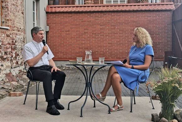 Brolybės ir socialinės draugystės idėjos, kurias ypač susiskaldžiusiam šiandienos pasauliui kelia popiežius Pranciškus savo enciklikoje „Fratelli Tutti“ („Visi mes broliai“) (pasirašytoje 2020 m. spalio 4 dieną Asyžiuje), birželio 22-osios vakarą pagarsintos arkivyskupijos kiemelyje sėdus pokalbio su arkivyskupu Lionginu Virbalu SJ.