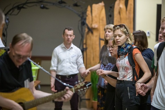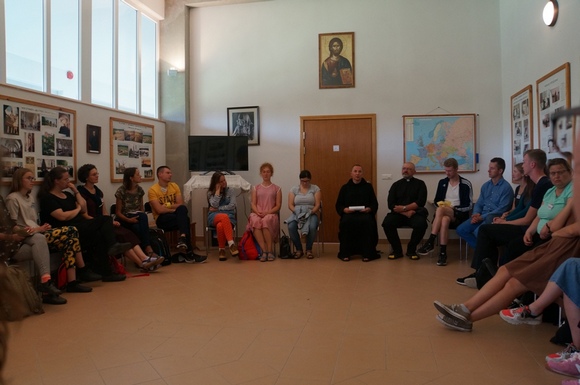 IŠVAKARĖSE. Susitikome Kauno kunigų seminarijoje, po susipažinimo žaidimų sekė bendra vakarienė po didingais seminarijos skliautais. Vakare Švč. Trejybės bažnyčioje klausėmės stipraus seminarijos rektoriaus kunigo Ramūno Norkaus liudijimo, po to vyko šlovinimas.