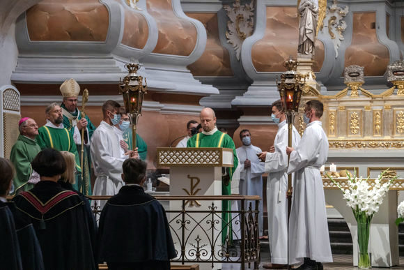 Šv. Mišių aukai vadovavo Kauno arkivyskupas metropolitas Kęstutis Kėvalas. Koncelebravo aukštosiose mokyklose dirbantys dvasininkai: Kaišiadorių vyskupas Jonas Ivanauskas, prelatas Vytautas Steponas Vaičiūnas OFS, mons. Artūras Jagelavičius. Patarnavo nuolatiniai diakonai – VDU Katalikų teologijos fakulteto dekanas Benas Ulevičius bei Darius Chmieliauskas, taip pat Kauno seminaristai.