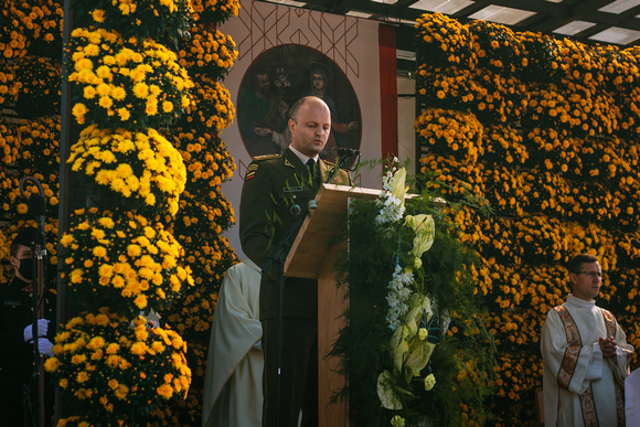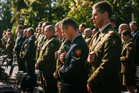 Eucharistiją užbaigus, padėkos žodį už Mišių auką taręs generolas leitenantas Valdemaras Rupšys pabrėžė, kokia svarbi yra kario dvasia ir malda, kad jis savo pareigą atliktų garbingai.