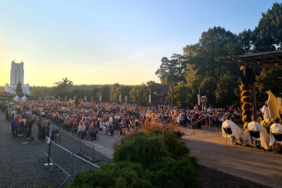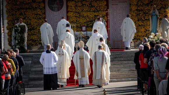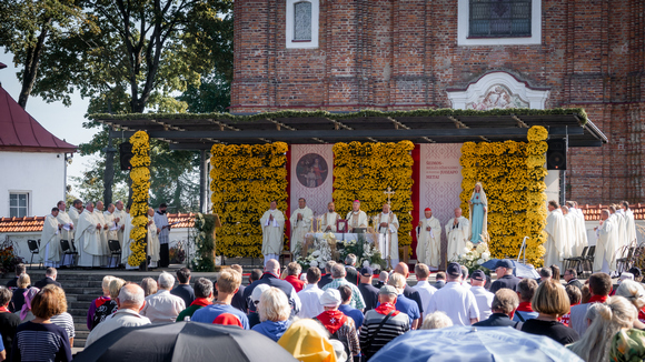 „Kai rūpinamės kitu, parodome jam Dievą“, – rugsėjo 10-ąją sakė atlaidų ceremonijarijus kunigas Artūras Kazlauskas prieš vidudienio iškilmingą Eucharistiją aikštėje, kuri savo didžiule erdve tapo ypač dėkinga šiuo pandemijos metu, kai tenka laikytis saugių atstumų.