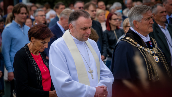 „Mes nesame tas, kuris galime teisti artimą. O ką turime daryti – tai mylėti. Tai reiškia – imtis savo kryžių. Eiti paskui Viešpatį Jėzų. Tai kelias į tikrąją laisvę, išsivadavimą iš egoizmo. Reikia kategoriškai atmesti supasaulėjimą ir savo „aš“ nestatyti į centrą. Statyti Viešpatį ir Jo garbinimą. Priimti išbandymus. Kaip Jėzus sako: „Kas pražudys savo gyvybę, dėl manęs ir Evangelijos, tas ją išsaugos.“ Būkime, brangieji, pilni Dievo garbinimo Dvasios. Čia prabilęs dangus mus padrąsino taip daryti. Visi drauge šlovinkime savo Viešpatį, nes tik tokiu būdu galime turėti savo, savo šeimų, mūsų Tėvynės ateitį“, – sakė arkivyskupas Kęstutis užbaigdamas homiliją.