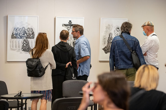 Atidaryme dalyvavo arkivyskupas Lionginas Virbalas SJ, iliustracijų autorius grafikas, dizaineris, Vilniaus dailės akademijos profesorius Rolandas Rimkūnas, menininkė ir menotyrininkė dr. Jurgita Kristina Pačkauskienė ir grafikas Vilniaus Dailės akademijos dėstytojas ir Kauno dailės mokyklos mokytojas Evaldas Mikalauskis.