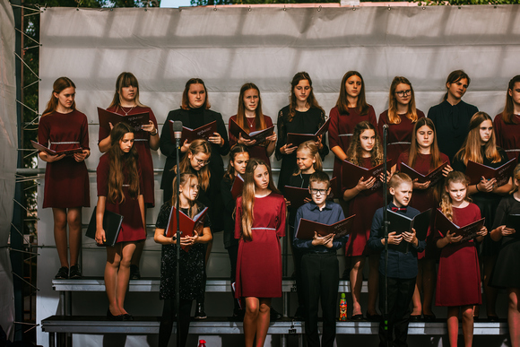 Vakarėjančioje aikštėje giesmių popuri Dievo Motinai ir atvykusiems piligrimams dovanojo Šiluvos parapijos maldos grupė, kurioje kartu grojo ir klebonas kunigas Erastas Murauskas.