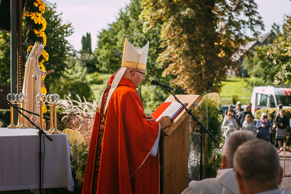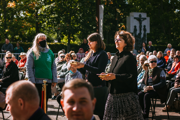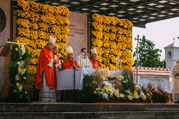 Sugiedojus Loreto Dievo Motinos litaniją – maldą ir poeziją, kaip ją apibūdino vyriausiasis atlaidų ceremonijarijus kunigas Artūras Kazlauskas, pradėtoje iškilmingoje Eucharistijoje Kauno arkivyskupas Kęstutis Kėvalas pakvietė susirinkusius aikštėje ir per transliacijas melstis už žmones, kurie kuria ir tarnauja visuomenės gėriui.