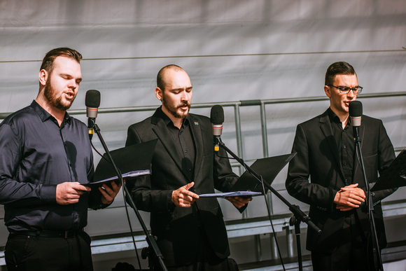 „Didžiausias menas yra tarnavimas“, – sakė aikštėje kunigas Artūras Kazlauskas. Savo katechezėje šią Visuomenės dieną kvietė žvelgti į Jėzaus Asmenį – tai Jis moko tarnauti. Taip gana priešinga pasauliui, kuriame nenorima tarnauti, bet verčiau imti jėga, užkariauti.