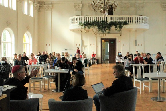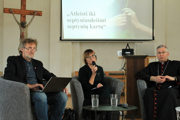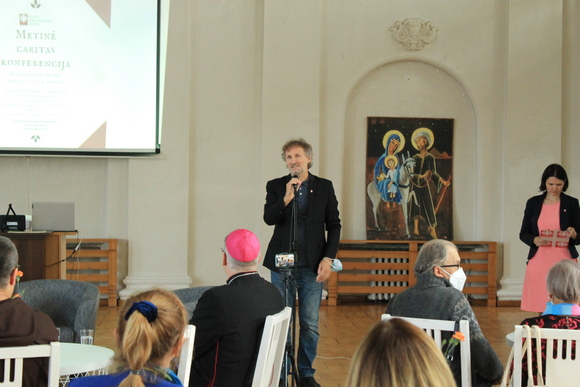 Savo įžvalgomis dalijosi arkivyskupas Kęstutis Kėvalas, arkivyskupijos Carito bendradarbė psichologė Neringa Čėlienė bei Carito direktorius Arūnas Kučikas. Teminiame pokalbyje konferencijos dalyviai buvo kviečiami išsakyti savo klausimus ir mintis, o jį moderavo arkivyskupijos Carito direktoriaus pavaduotoja Milita Žičkutė-Lindžienė.