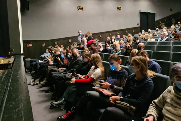 Antroje dienos pusėje gavome nuostabią dovaną – galimybę apsilankyti Nacionaliniame Kauno dramos teatre ir visiems kartu pažiūrėti spektaklį „Aš – Moljeras“.