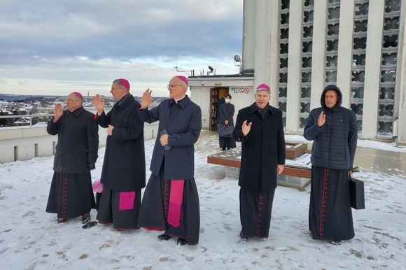 Pirmą kartą šventovės istorijoje viešėjęs apaštališkasis nuncijus kartu su vyskupais palaimino miestą nuo Kristaus Prisikėlimo bazilikos terasos.