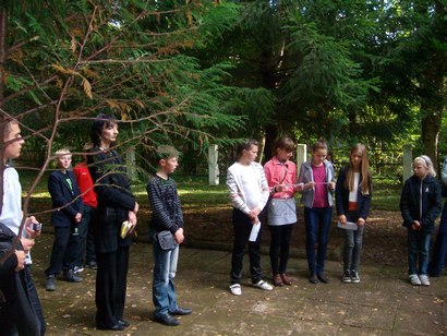 Vilkijos parapijos pastoracinės tarybos narė Aurelija Chamrovski jaunuolius supažindino su izraelitų tradicijomis kapinėse.