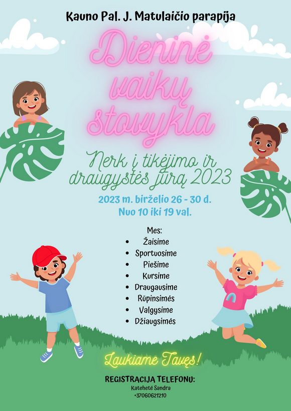 Pal. Jurgio Matulaičio parapija organizuoja ir kviečia vaikus nuo 7 iki 14 m. dalyvauti krikščioniškoje vaikų dienos stovykloje.