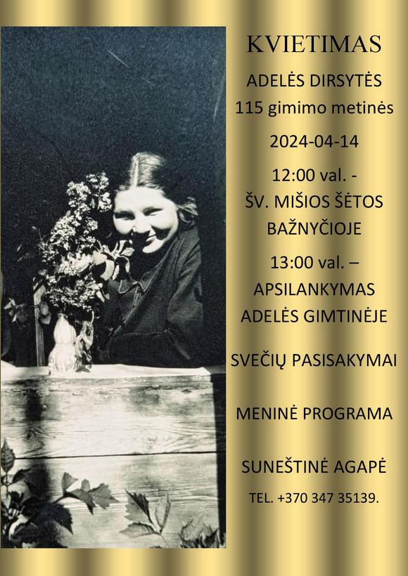 Balandžio 14 d. Adelės Dirsytės 115-ųjų gimimo metų paminėjimas Šėtoje