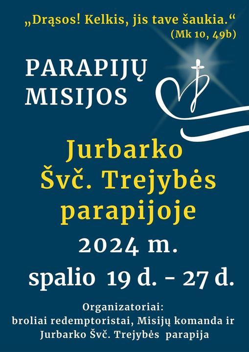 Tėvai redemptoristai dalijasi žinia, jog visai netrukus, spalio 19-ąją, Misijų sekmadienio išvakarėse, jie drauge su Misijų komanda ir Jurbarko Švč. Trejybės parapija pradės čia Misijų savaitę.