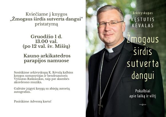 Gruodžio 1 d. Arkivyskupo K. Kėvalo knygos „Žmogus sutvertas dangui“ pristatymas Kauno arkikatedros parapijos namuose