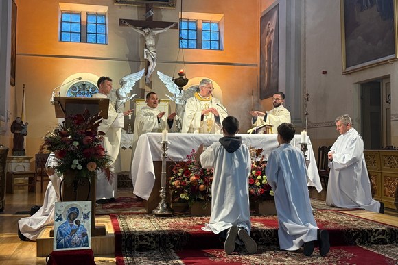 Raudondvario klebonas, Kauno II dekanato dekanas kunigas Erastas Murauskas uždėjo kunigams misionieriams stulas kaip įgalinimo ženklą vesti misijas jo parapijoje.