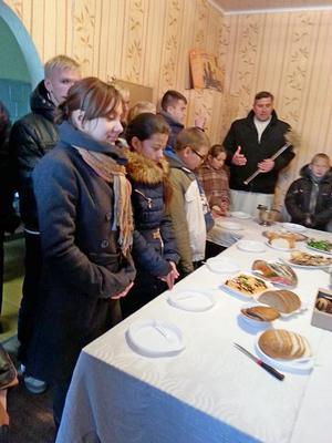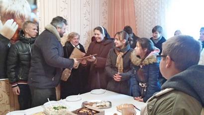 O štai šį pirmąjį Advento sekmadienį patalpos buvo ir pašventintos. Ta proga parapijos klebonas kun. Audrius Mikitiukas ne tik negailėjo gerų ir įkvepiančių žodžių rūpestingiems ir darbštiems parapijiečiams, bet pats pasirūpino vaišėmis šventiniam stalui, aplink kurį susirinko vaikai, jaunimas ir suaugusieji. Šio sumanymo iniciatoriams bei vykdytojams buvo įteiktos dailininkės ses. Joanos Kašiubaitės FDCJ sukurtos padėkos.