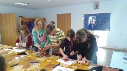 Sausio 1-osios rytą po maldos ir pusryčių stovyklautojus savo globon perėmė iš Jonavos atvykę savanoriai Vanda ir Arūnas Jančiauskai. Jie stovyklai talkino ir pernai, be to, dažnai būdavo ir Bukonių parapijoje, taigi juos vaikai pasitiko taip šiltai, tarsi savo tėvus. Vanda su mergaitėmis ruošė pietus, kartu aptardamos su tam tikrais valgiais susijusius Biblijos klausimus, o Arūnas berniukus mokė nusišlifuoti ir parengti klijavimui medžio lenteles, o paskui, susipažinus su arkangelais Biblijoje, išsirinkti jų reprodukciją ir dailiai užklijuoti.