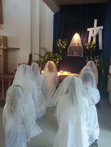 Balandžio 1 d., šv. Velykų rytą, Kristaus Prisikėlimo iškilmei ir procesijai vadovavo parapijos klebonas kun. Jonas Bujokas.