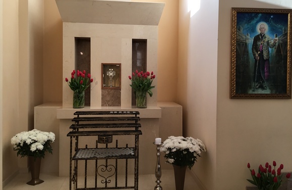 Šventovėje nuo ankstyvo ryto vyko Švč. Sakramento adoracija, meldėmės Rožinį, Dievo gailestingumo vainikėlį. Kalbėjome Švč. Jėzaus Širdies, Šv. Kazimiero, Pal. T. Matulionio litanijas. Šlovinome Šventąją Dvasią, giedojome Švč. Mergelės Marijos litaniją. Vakaro šv. Mišių pabaigoje klebonas kun. G. Pūras parapijiečiams ir svečiams suteikė iškilmingą palaiminimą garbingojo arkivyskupo relikvija. Po Mišių su meile ir pagarba lietėme relikvijorių, dėkojome Lietuvos palaimintajam už drąsą liudijant tikėjimą Evangelija.