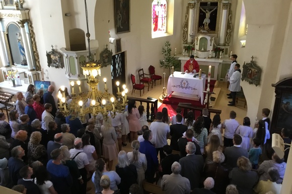 Mišių pabaigoje gausiai pamaldose dalyvavusiems parapijiečiams ir svečiams kun. G. Pūras suteikė palaiminimą, pašventino vaikų škaplierius ir rožinius, prašė pasitikėti Jėzaus ir Bažnyčios Motinos Marijos globa. Po Mišių klebonas įteikė vaikams Pirmosios Komunijos pažymėjimus, dovanojo knygų apie Švč. Mergelės Marijos apsireiškimą Šiluvoje, pakvietė kartu nusifotografuoti prie bažnyčios.