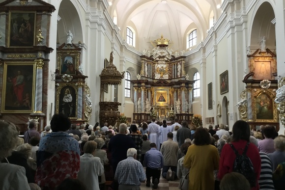 Trakų bazilikoje atlaidų aštuondienio paskutinės dienos vidudienio Mišioms vadovavo kardinolas Vilniaus arkivyskupas emeritas Audrys Juozas Bačkis, koncelebravo gausus būrys kunigų, patarnavo Vilniaus kunigų seminarijos auklėtiniai.