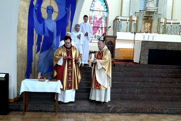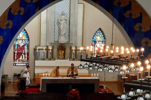Baigiantis šv. Mišioms per parapijas keliaujantis Rožinis buvo iškilmingai perduotas Kauno Šventojo Kryžiaus (karmelitų) parapijai.