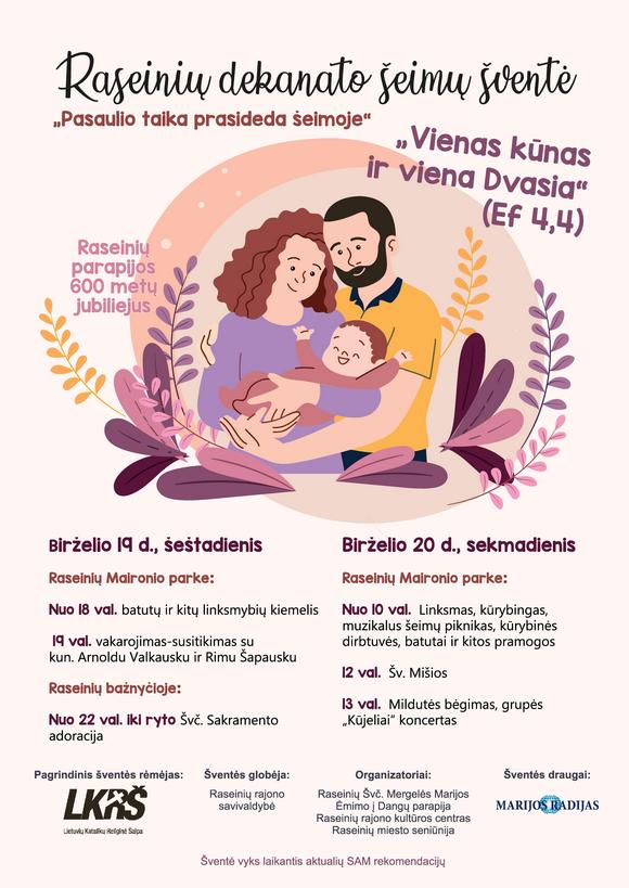 Birželio 19–20 d. Raseinių dekanato Šeimų šventė minint ir Raseinių parapijos 600 metų jubiliejų