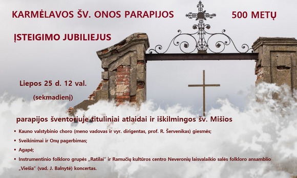 Liepos 25 d. (sekmadienį) Karmėlavos Šv. Onos parapija kvietė į titulinius atlaidus, kuriuose paminėtas ir parapijos įsteigimo 500 metų jubiliejus..